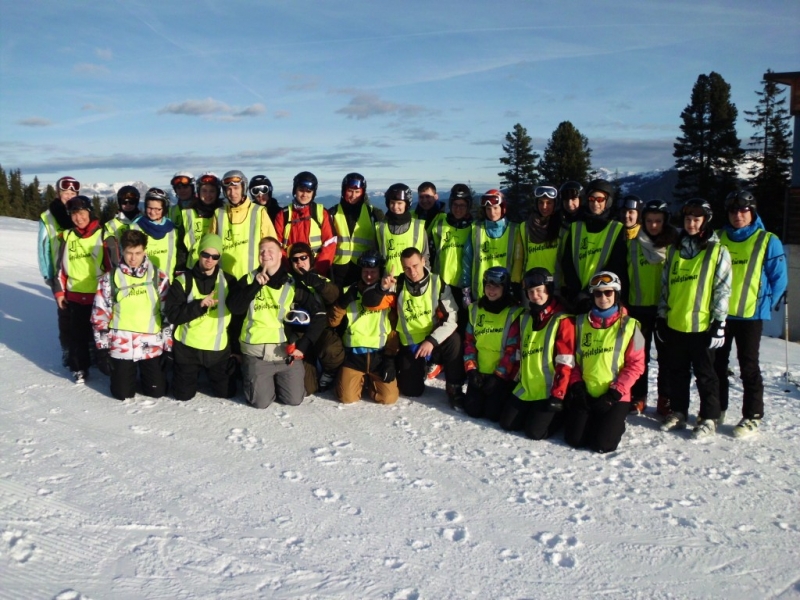 Möglich wurde dies durch eine besondere Kooperation dieser Schulen, so dass es auch kleineren Gruppen einzelner Schulen möglich war, an einem Skiprojekt teilzunehmen. Für gut 2/3 der Schüler sollte es die erste Erfahrung mit dem alpinen Skisport werden. Groß war die Sorge Einzelner, liegt überhaupt Schnee. Doch auf ca. 2000m konnten diese Bedenken rasch zerstreut werden. Neugierig und hochmotiviert begann der erste Skitag. Während die fortgeschrittenen Skifahrer gleich das gesamte Skigebiet erkundeten, galt es für die Anfänger überhaupt erst mal im flachen Gelände auf 2 Ski zurechtzukommen. Sehr schnell wurden hier große Leistungsunterschiede deutlich. Umso wichtiger war es, in unterschiedlichen Lerngruppen mit unterschiedlichem Lerntempo weiterzuarbeiten, um jedem einen optimalen Lernerfolg zu ermöglichen. Erste Hürden beim Schneepflug-, Kurven- oder Schleppliftfahren wurden gemeistert.