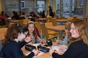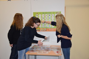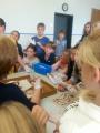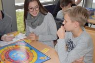 Für die Schüler, die noch auf ihre Spielrunde warten mussten bzw. ausgeschieden waren, gab es einen Stationsbetrieb zur Beschäftigung mit der russischen Sprache sowie zur Auseinandersetzung mit Themen rund um Russland. Das breite Spektrum an Möglichkeiten – beispielsweise von russischer Geografie über Memory mit Bildern russischer Künstler bis hin zum Finden von russischen Wörtern in einem Wortgitter – wurde von den Mädchen und Jungen gern angenommen.