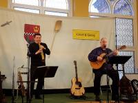 Mittlerweile ist es schon zu einer guten Tradition geworden, die Behandlung der Balladen im Unterricht der Klasse 7 auf diese Weise abzurunden. Die beiden Künstler verbinden in ihren Darbietungen Literatur mit Musik und sie spielen bekannte und weniger bekannte deutsche Balladen mit großer Instrumentenvielfalt. So erlebten die Schüler den Vortrag der aus dem Unterricht bekannten Balladen „Der Handschuh“ und „ Der Zauberlehrling“. Sie konnten aber auch viel Neues entdecken: Balladen wie „Herr von Ribbeck auf Ribbeck im Havelland“, „Der Rattenfänger von Hameln“, „Der König in Thule“, „Der Tantenmörder“ oder „Galgenbruders Lied“ zeigten gleichermaßen ernsthafte und humorvolle Seiten.