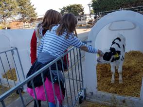 Zuerst sahen wir Kälber, die zwischen einem Tag und einer Woche alt waren. Diese Tiere fanden wir sehr süß und durften sie sogar streicheln. Danach waren wir bei den Achterboxen für die mittelgroßen Tiere und haben uns dort das bereitliegende Futter angeschaut. Dabei haben wir gelernt, dass kleinere Rinder anderes Futter bekommen als größere. Das Stroh kommt vom Hof selbst und wird dort in großen Stapeln gelagert. Auch das Kraftfutter, wie z.B die Maissilage, wird ebenso in großen abgedeckten Futtersilos aufbewahrt. In den Ställen für erwachsene Rinder sahen wir uns auch um. Diese Tiere werden in Laufställen gehalten. Leider sind die Regeln im Melkstall sehr streng, so dass wir dort nur kurz hineinschauen durften.
